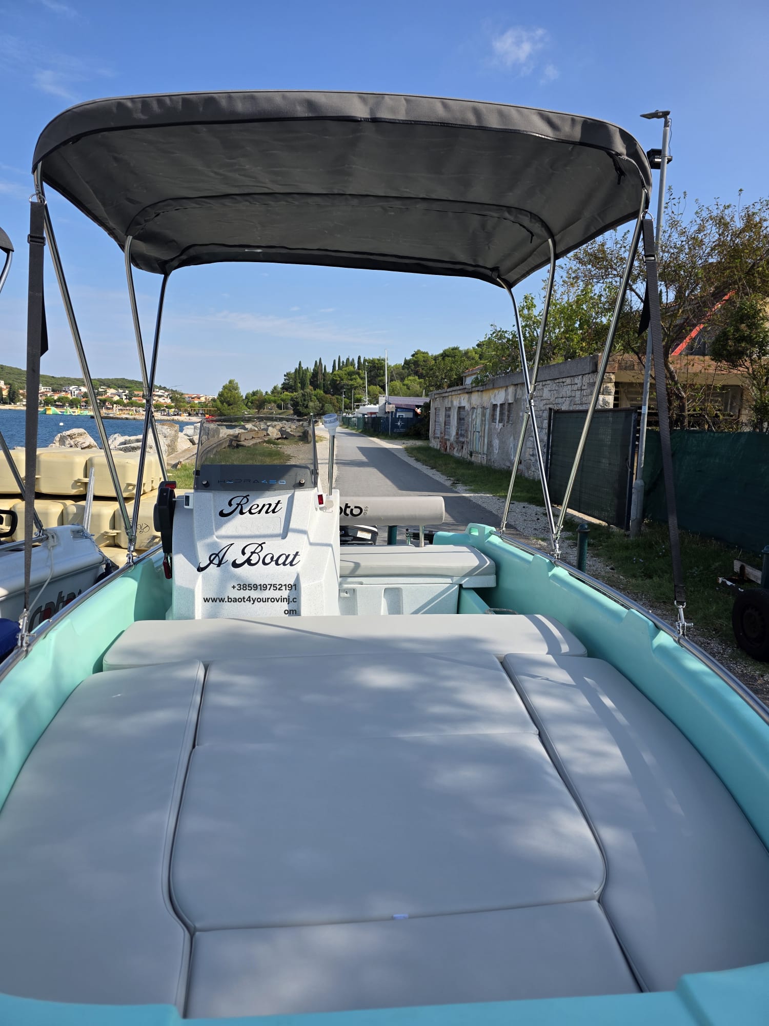 Roto 450s Family (2024), a stunning brand new boat designed to elevate your aquatic adventures like never before! With a spacious capacity of 4 people and a big sundeck, this boat is perfect for family outings, group getaways, or simply exploring the serene waters with your friends. Crafted with the utmost care and innovation, the Roto 450 is constructed using high-quality Polyethylene material, rendering it virtually unsinkable and indestructible. You can embark on your journey with peace of mind, knowing that safety is paramount. Navigating the waters has never been easier! The Roto is incredibly user-friendly, offering effortless control to both seasoned sailors and beginners alike. Equipped with a reliable Selva 9.9 HP motor, you can glide smoothly through the waves, embracing the thrill of the open sea. As you soak up the sun’s warm rays, our thoughtfully designed shade will provide a welcome respite, ensuring you stay cool and comfortable throughout the day. Whether you’re fishing, snorkeling, or simply enjoying a leisurely cruise, the shade offers a sanctuary from the sun’s intensity. Experience the perfect blend of adventure and relaxation with the Roto 450. Its modern design and exceptional durability guarantee an unforgettable journey, tailored to your desires. Don’t miss out on this incredible opportunity to explore the waters in style. Book your Roto 450 now and create lasting memories on the shimmering sea!